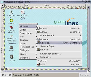 La guardamos en .PNG, luego la abrimos desde GIMP y por último la guardamos en el formato deseado.