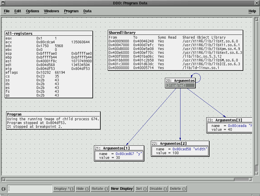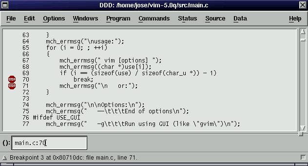DDD'nin yapabileceklerini öğrenebilmek için orijinal dokümanlara bakmak daha yararlı olacaktır. Her durumda debugger ile bir kaç basit işlemin nasıl yapılabileceğini açıklayacağım.